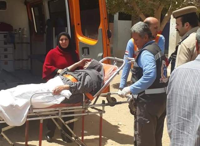 سيارة إسعاف تنقل سيدة مريضة للإدلاء بصوتها في الاستفتاء بالشرقية