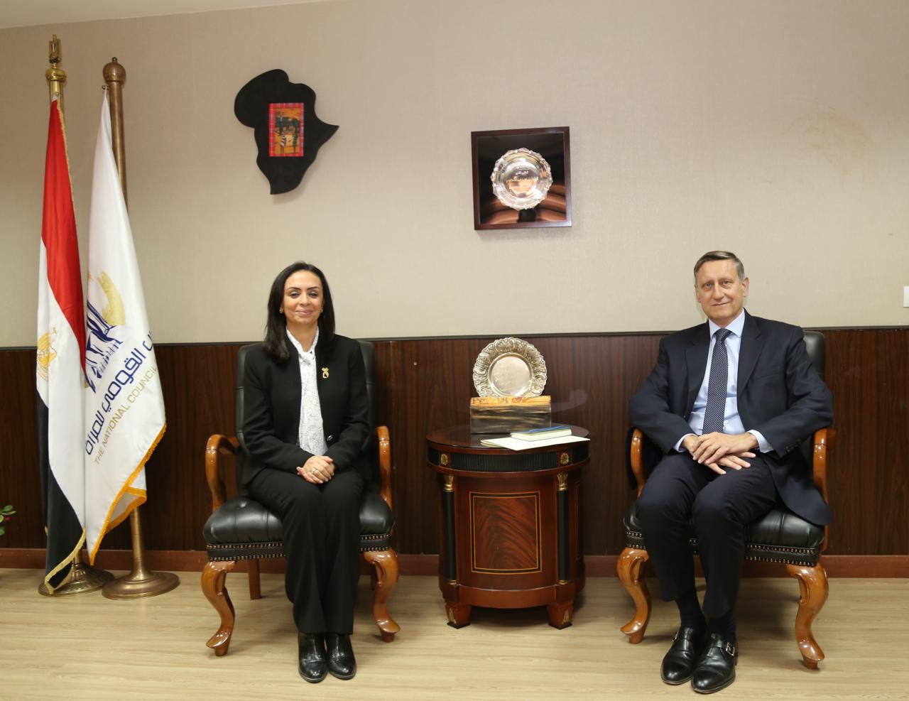 مايا مرسي تستقبل سفير المانيا بالقاهرة للتعرف علي جهود مصر في مجال تمكين المرأة