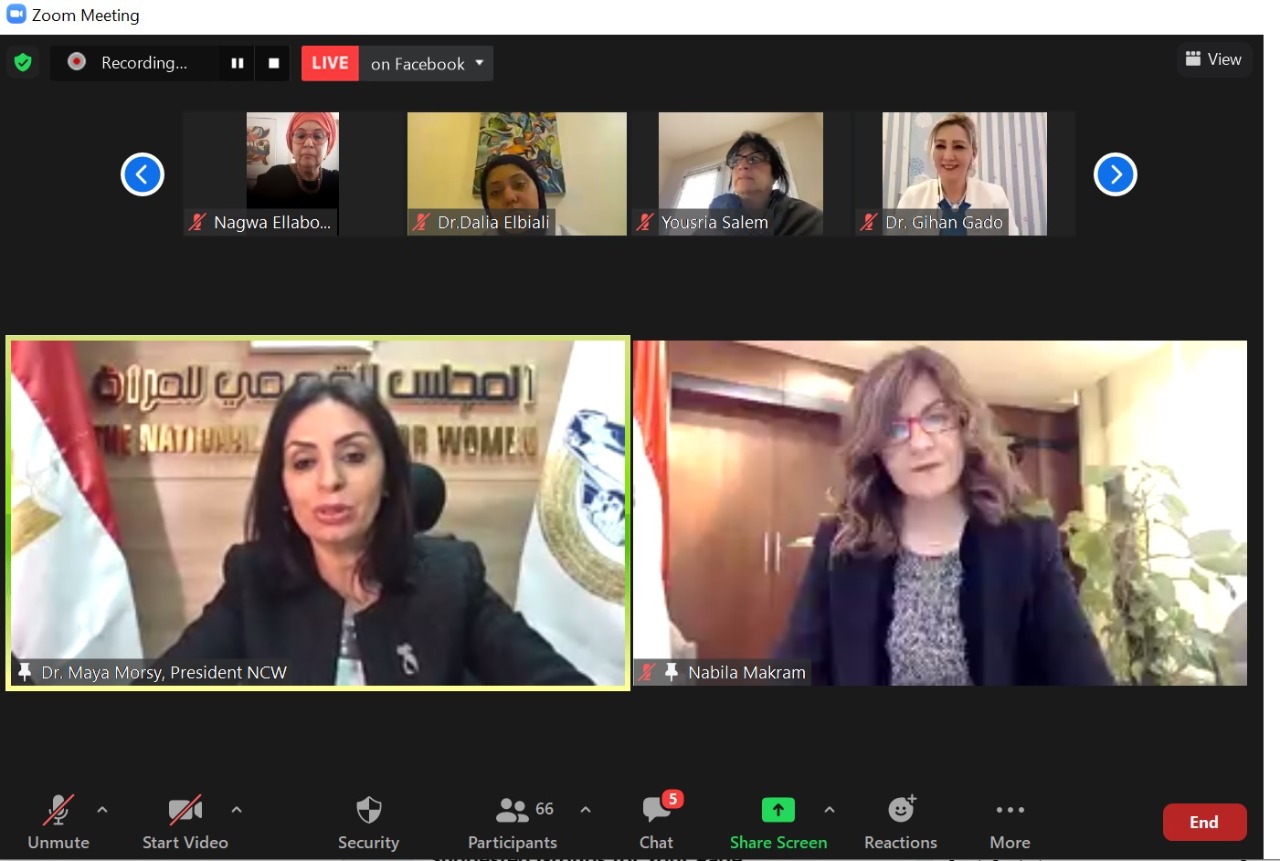 د. مايا مرسي تستعرض جهود مصر للتصدي للآثار الاجتماعية السلبية على المرأة والفتاة جراء انتشار كورونا