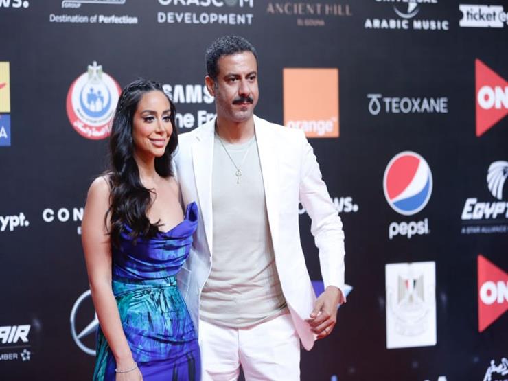 قبلة مثيرة من محمد فراج لخطيبته بسنت شوقى على ريد كاربت مهرجان القاهرة.. صور