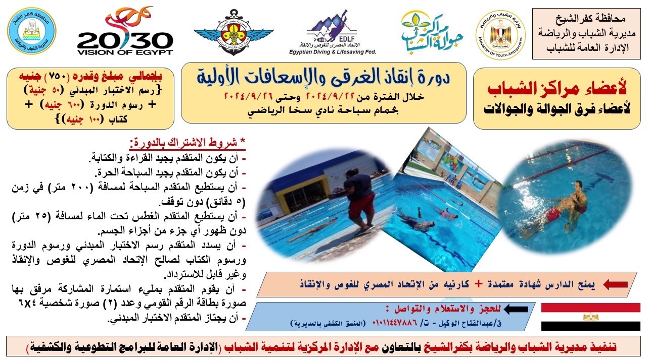 مديرية الشباب والرياضة بكفرالشيخ تطلق دورة عن إنقاذ الغرقى