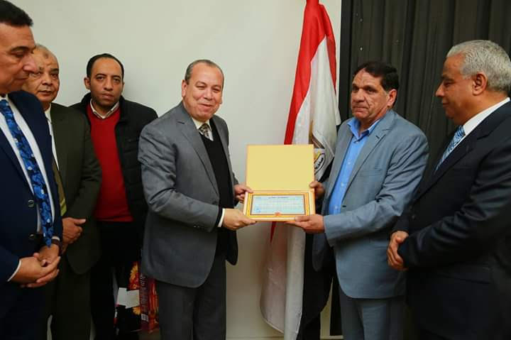 محافظ كفرالشيخ يكرم رئيس مدينة الرياض لبلوغه السن القانونية