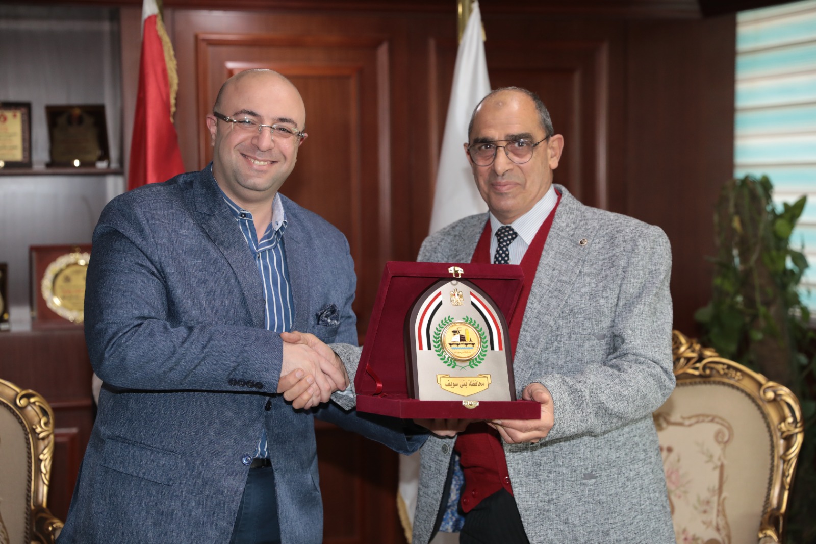محافظ بني سويف يكرم مدير مركز معلومات شبكات المرافق