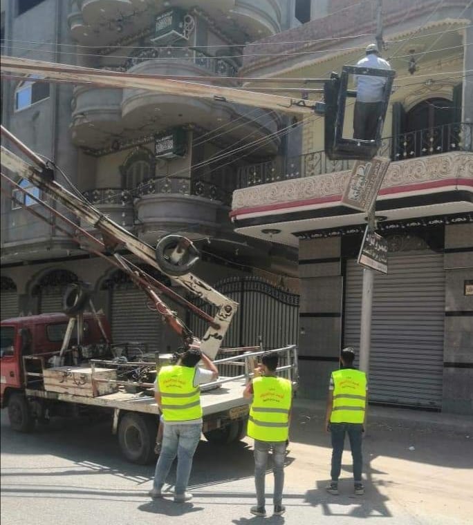 صيانة أعمدة وتركيب كشافات فى قرى مركز منيا القمح ..صور