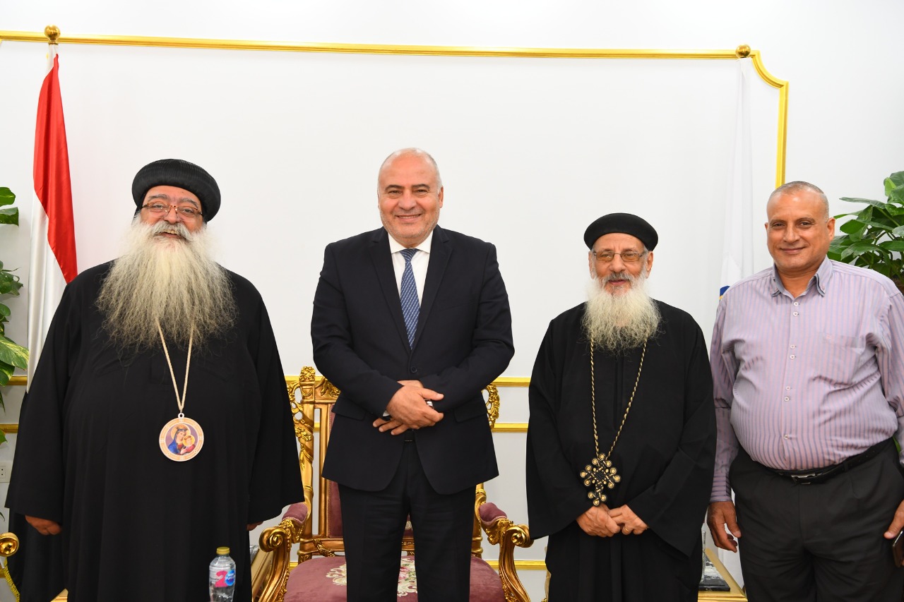 محافظ أسيوط يستقبل وفد من مطرانية القوصية برئاسة الأنبا توماس
