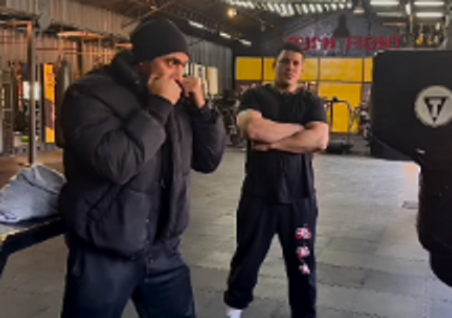 رونالدو يعلم نجله حركات ملاكمة في أشهر نزال بالعالم.. فيديو