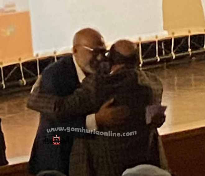 جمال سليمان يحتضن صلاح عبد الله فى حفل افتتاح ملتقي القاهرة الدولي للمسرح الجامعي