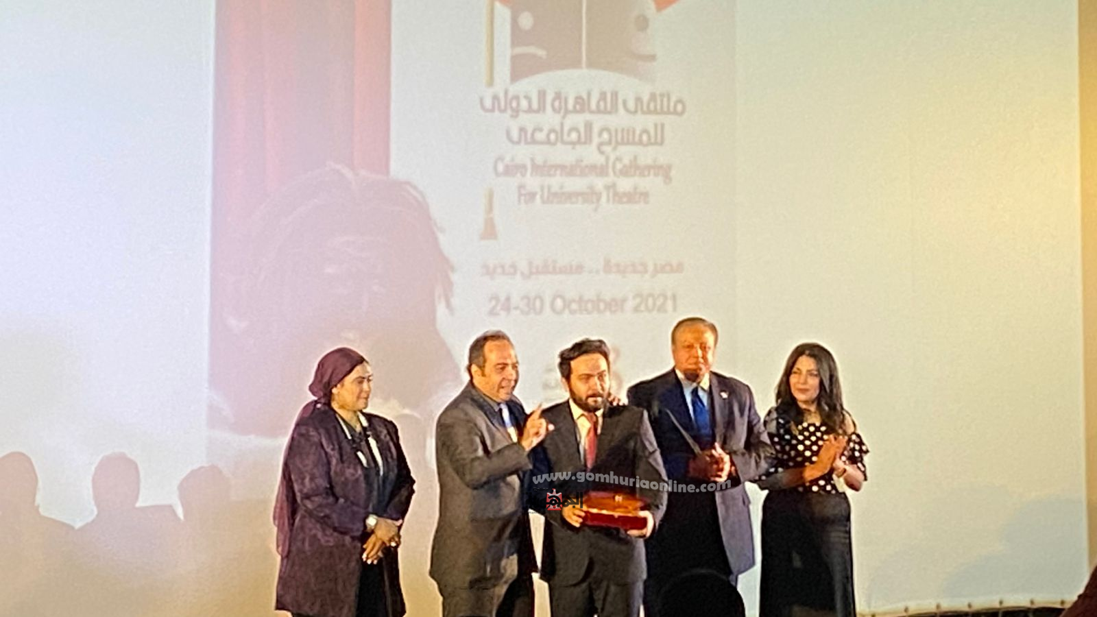 علمني الفن.. المخرج تامر كرم يهدي تكريمه فى ملتقي القاهرة الدولي للمسرح الجامعي للفنان أشرف زكى
