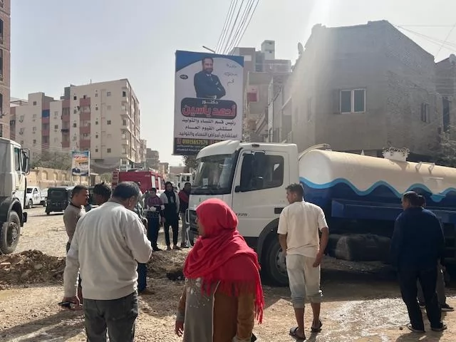 مياه البحر الأحمر تبدأ تأهيل شبكة مياه عمارات العلام فى أبو عشرة