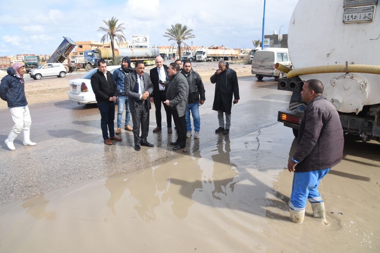 شعيب يتفقد سحب تجمعات مياه الأمطار على الطريق الدولي مطروح السلوم