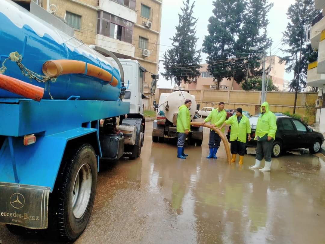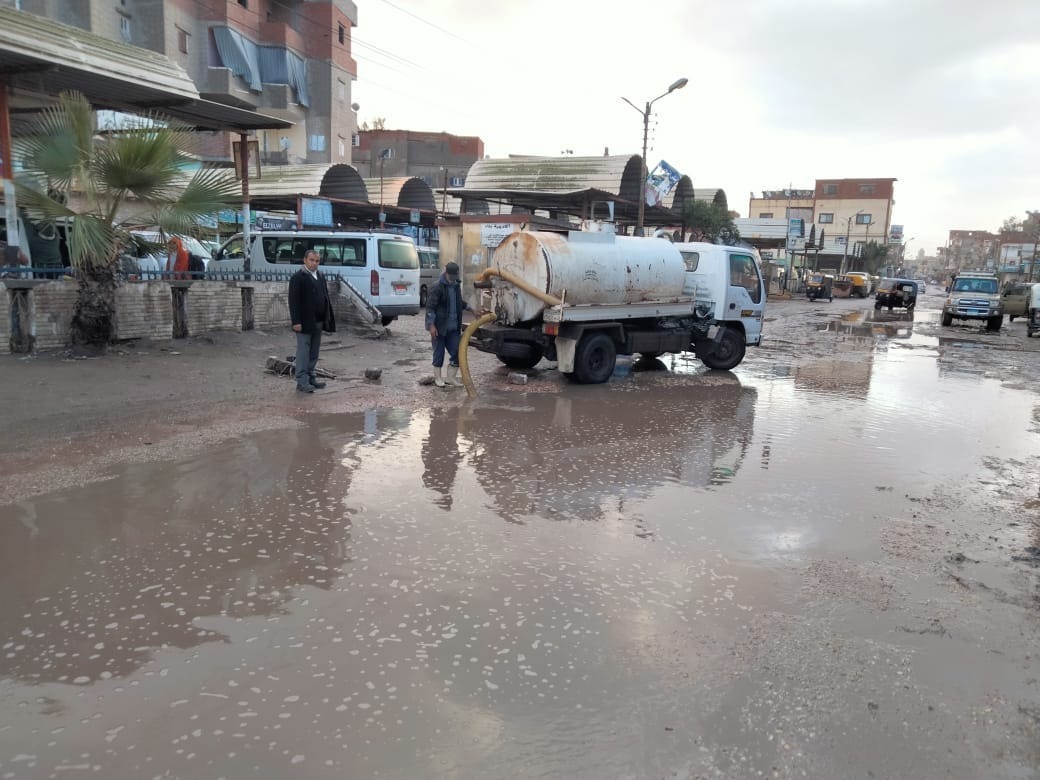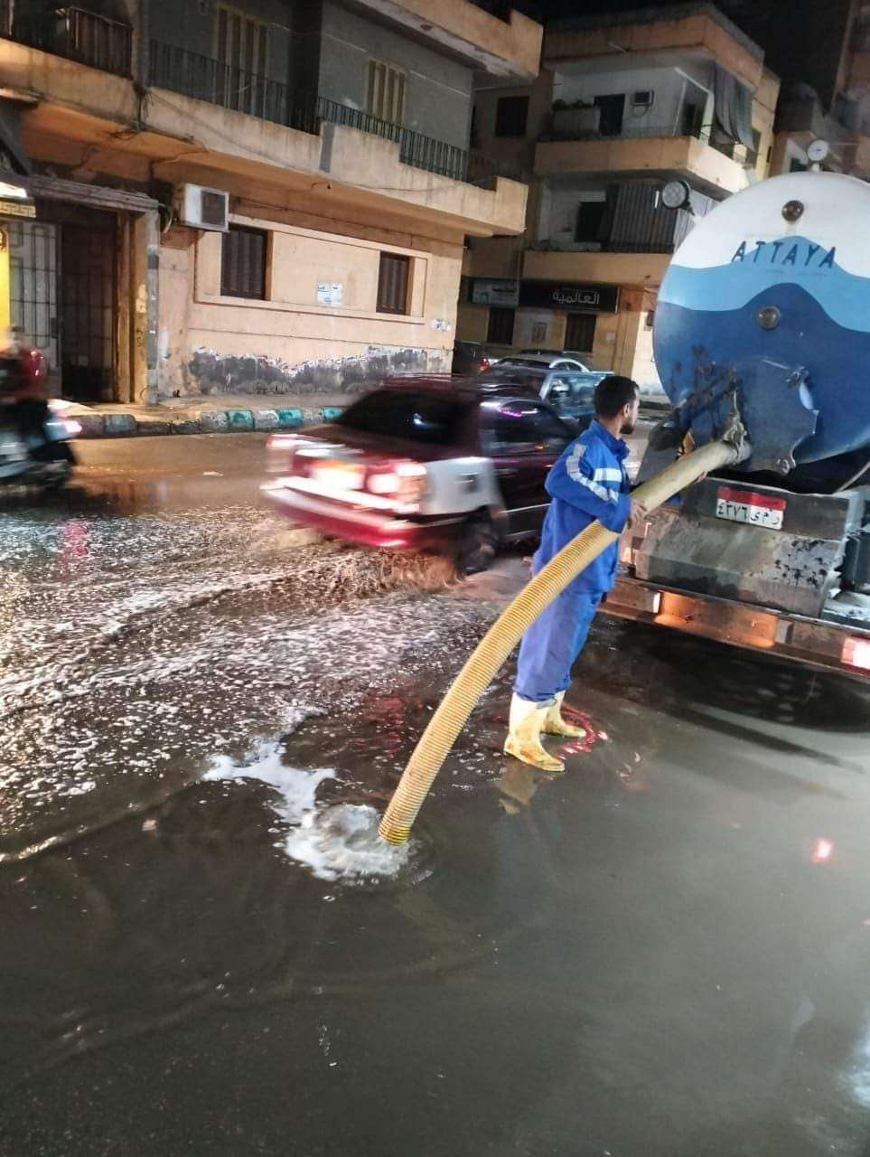 رفع تراكمات مياه الأمطار بمدينة الروضة بدمياط