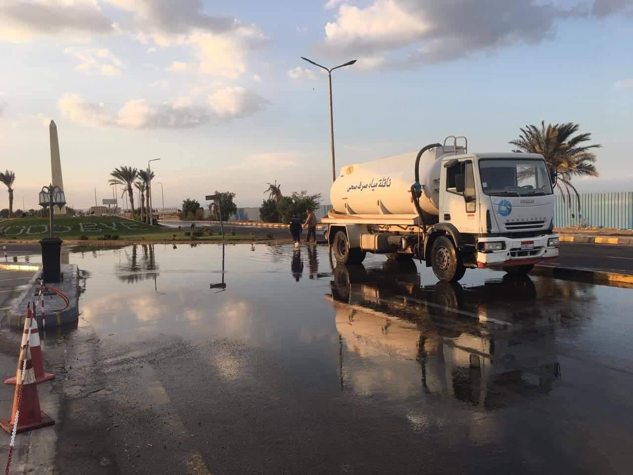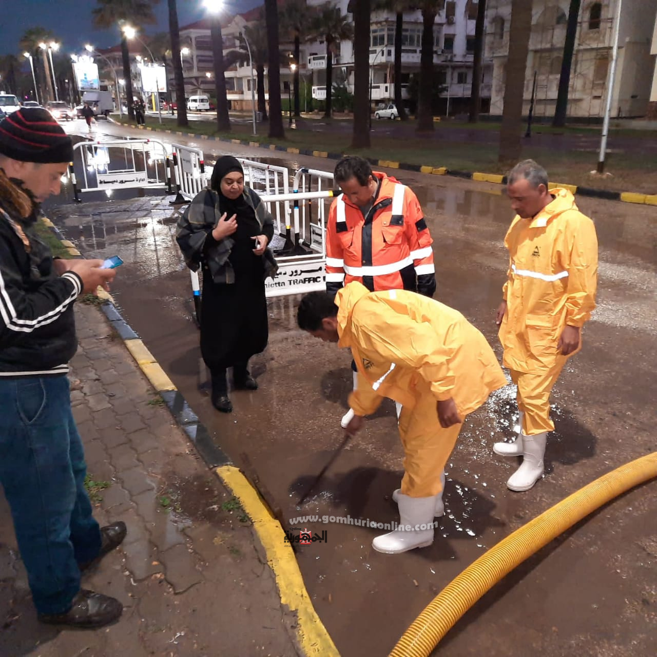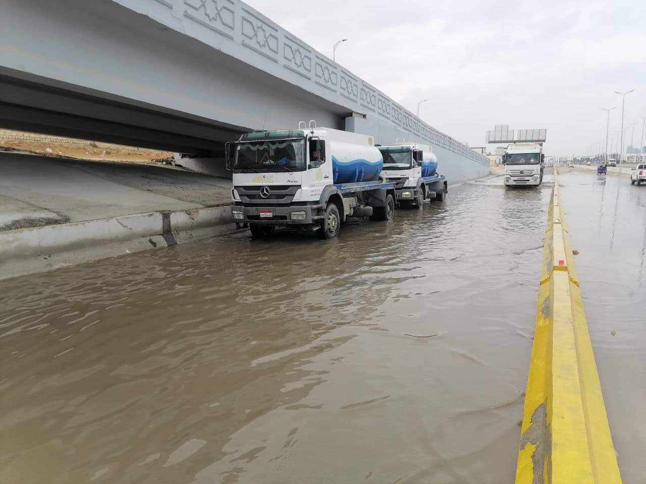 مياه مطروح تكثف اعمال رفع تراكمات مياه الأمطار بالطريق الساحلي