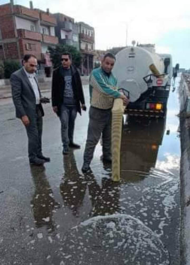 تسليك بيارات الصرف الصحي وكسح مياه الأمطار من شوارع مدينه الحمام