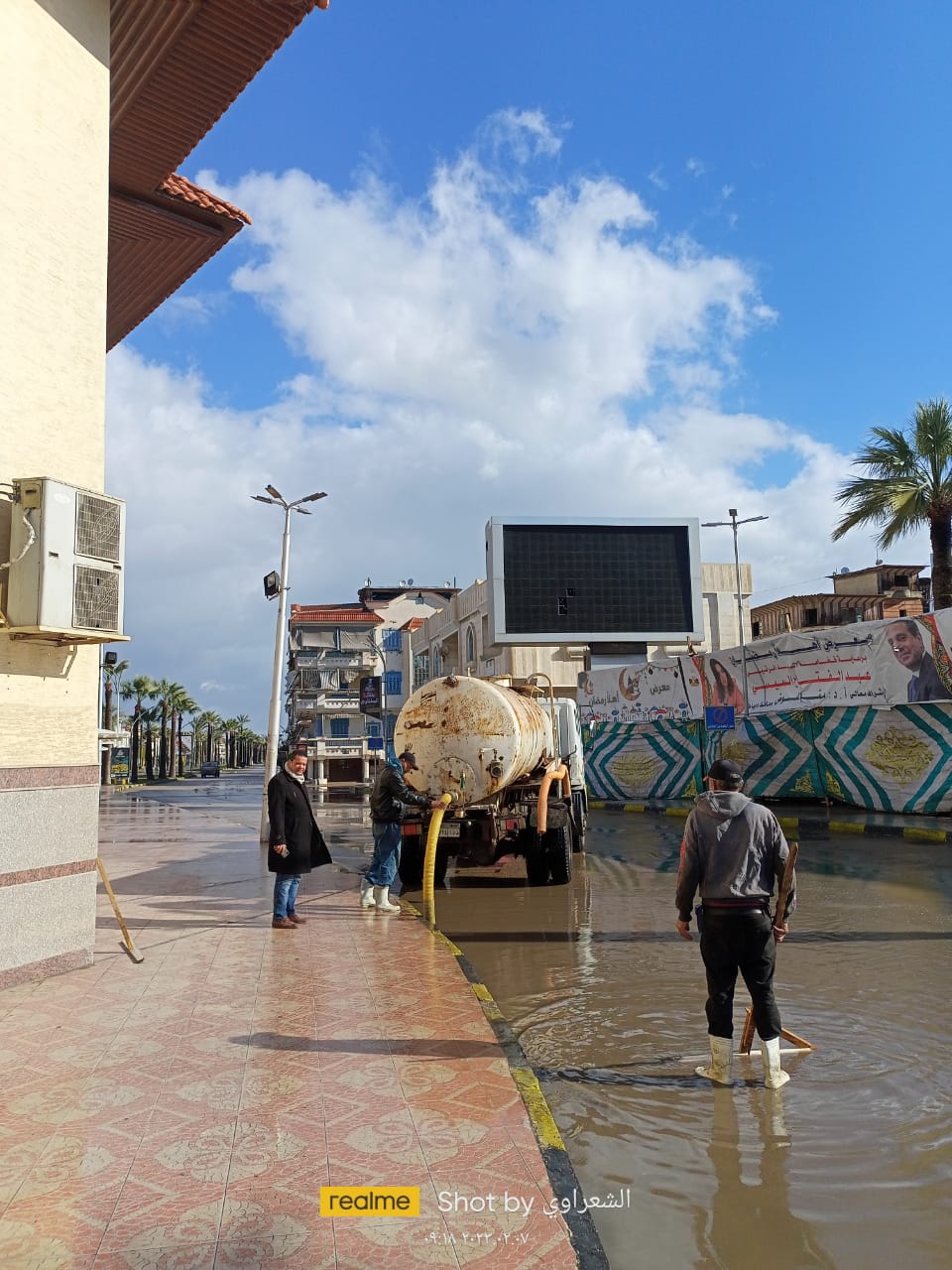رأس البر تواصل جهودها لرفع تجمعات مياه الأمطار