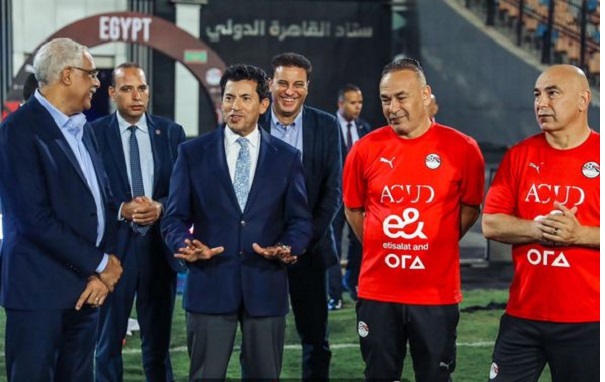 شاهد.. وزير الرياضة يدعم لاعبي منتخب مصر قبل مواجهة بوركينا فاسو