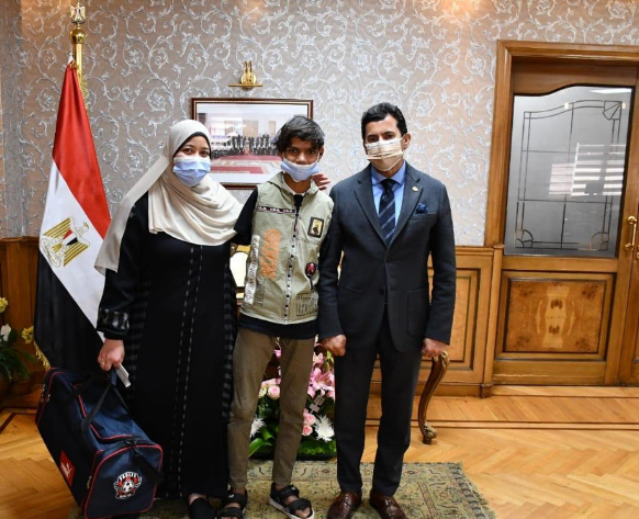 وزير الشباب والرياضة يكرم الطفل ابراهيم محيسن