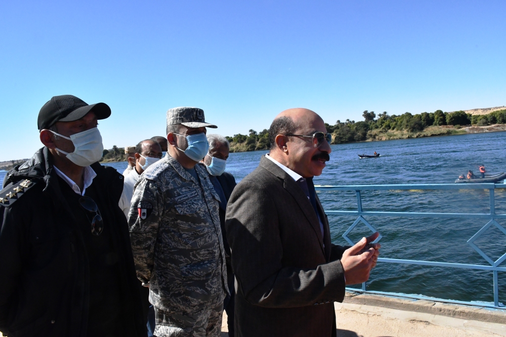 محافظ أسوان يشهد تجربة المحاكاة العملية لمكافحة تلوث بترولى نهرى بمرسى الأعقاب
