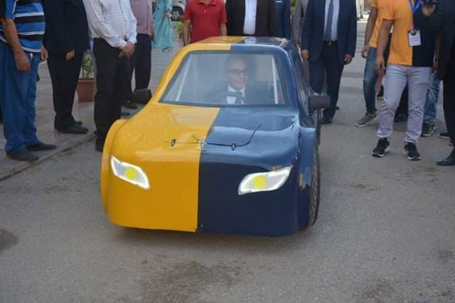 رئيس جامعة الزقازيق يشهد تجربة السيارة الكهربائية الجديدة بكلية الهندسة