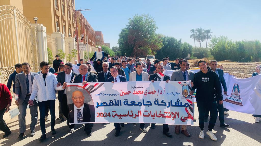 رئيس جامعة الأقصر يقود مسيرة حاشدة للحث على المشاركة فى التصويت
