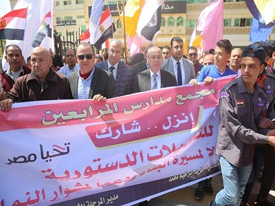 محافظ كفرالشيخ يقود مسيرة حاشدة في الشوارع للدعوة بالمشاركة في الاستفتاء