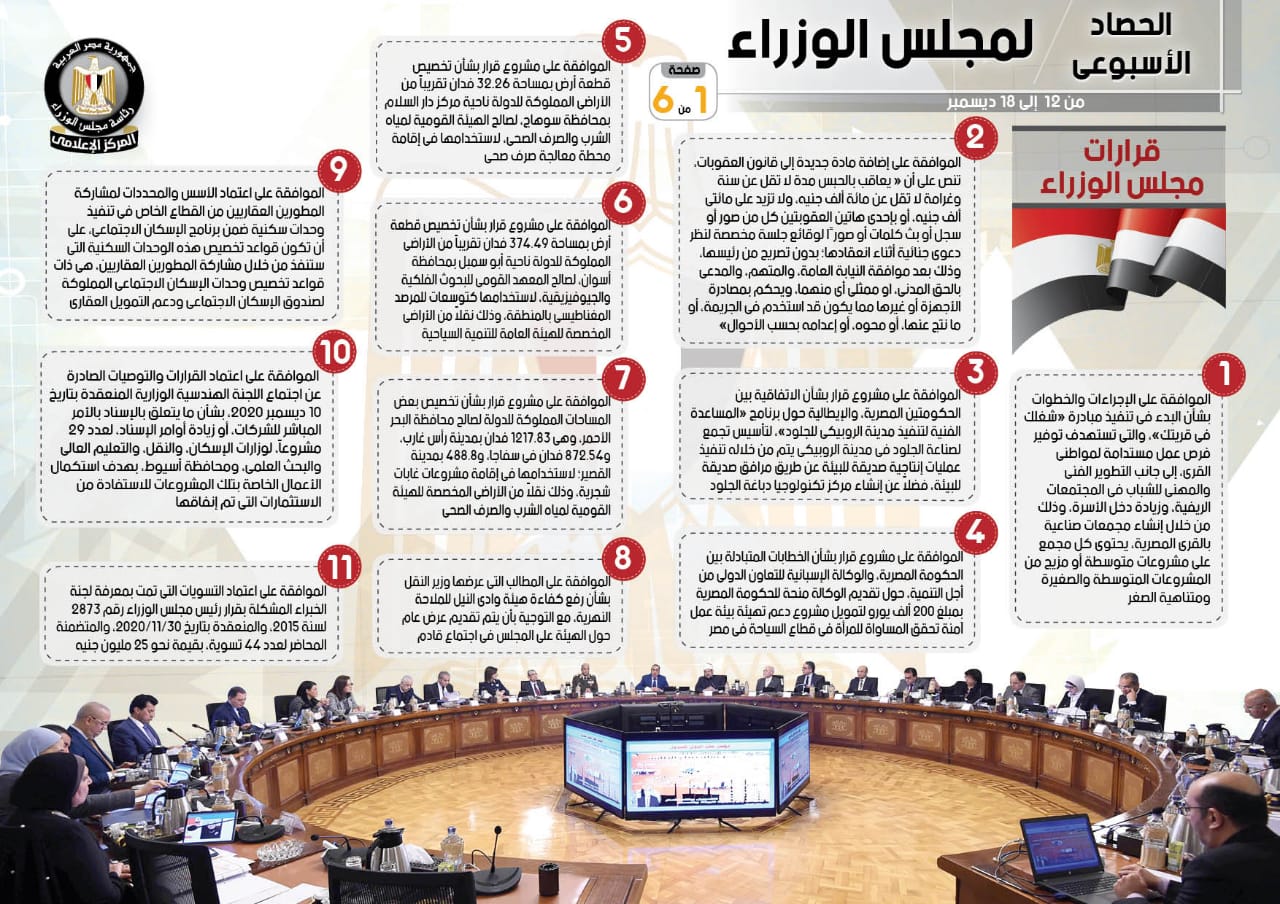 بالإنفو جراف.. الحصاد الأسبوعي لمجلس الوزراء خلال الفترة من 12 إلى 18 ديسمبر