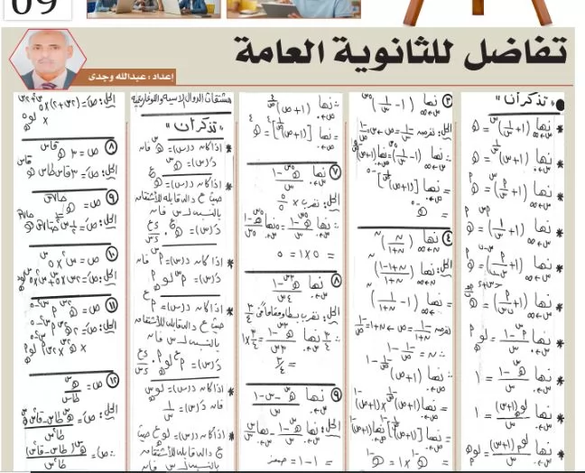 16 سؤالا في النهايات بمادة التفاضل للثانوية العامة 2026