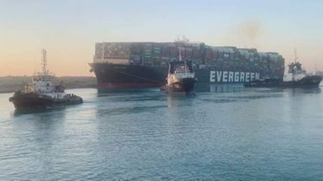 السفن تطلق أبواقها احتفالا بنجاح تعويم "ايفر جيفن" البنمية بعد جنوحها 6 أيام بقناة السويس ..فيديو