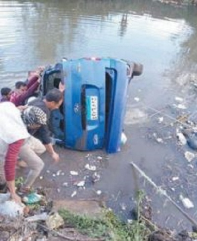 سيارة نقل أطاحت بالاشقاء الثلاثة على الطريق المطرية-دمياط