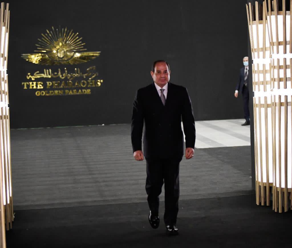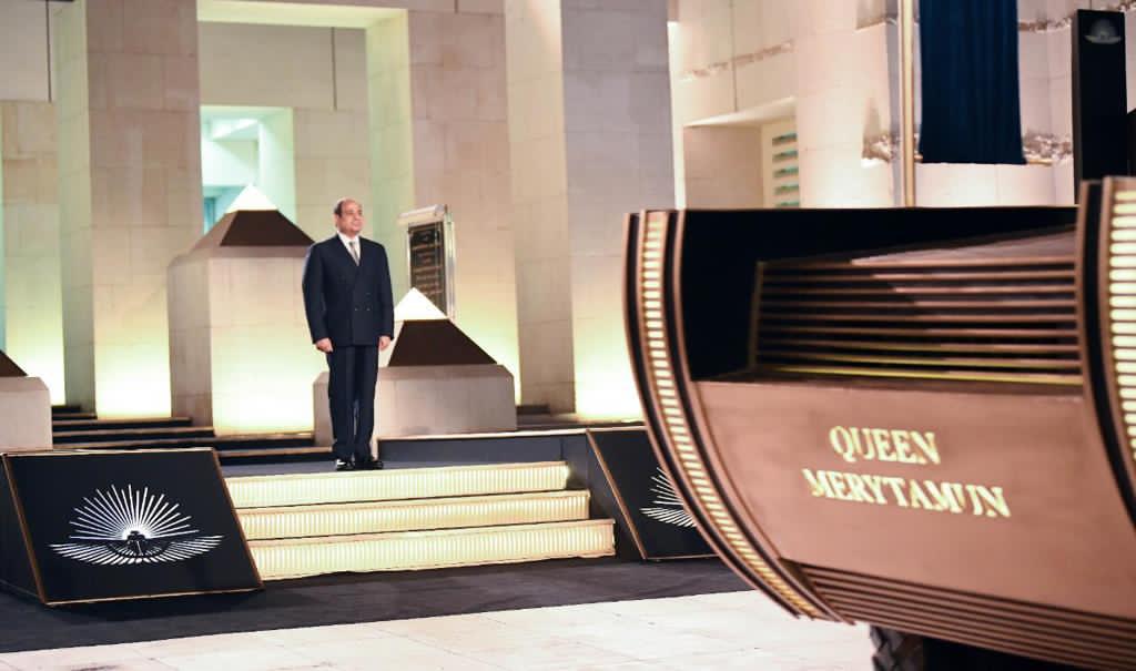 الرئيس السيسي يستقبل الموكب الذهبي بمتحف الحضارة
