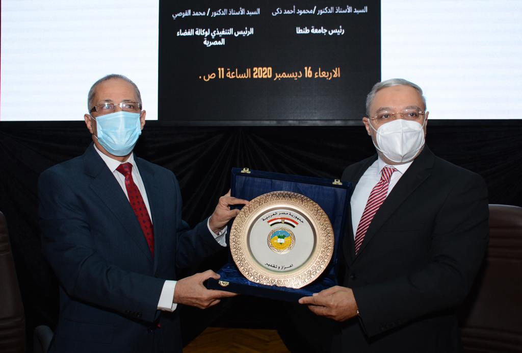 رئيس جامعة طنطا يكرم الرئيس التنفيذي لوكالة الفضاء المصرية