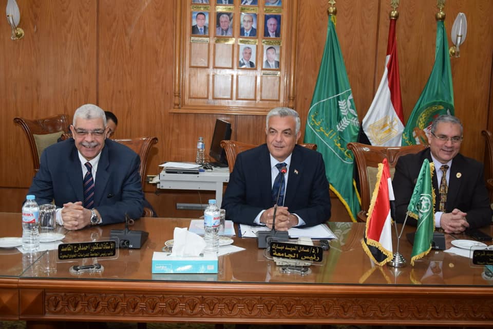 رئيس جامعة المنوفية ونوابه يجتمعون بعمداء الكليات