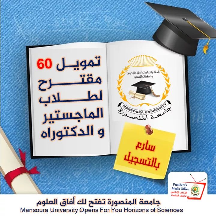 تمويل 60 مقترح لطلاب الماجستير و الدكتوراه بجامعة المنصورة