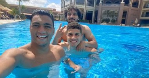 لاعبو الزمالك يلجأون لحمام السباحة لمحاربة حرارة الجو.. صور