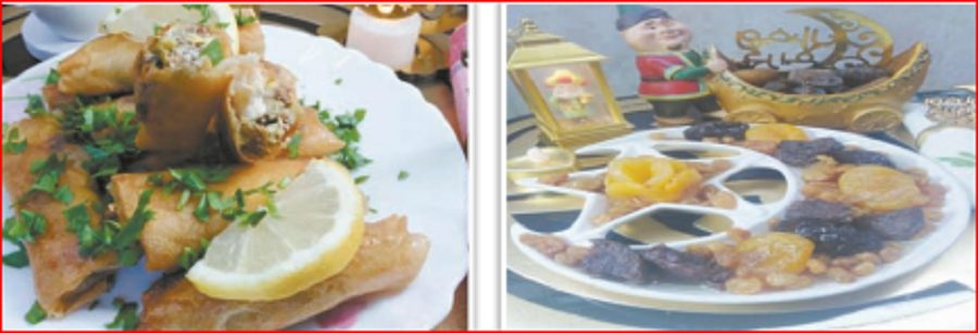 الإفطار: طاجن اللحم..طبق السفرية..الحلو:خبزة كنافة باللوز