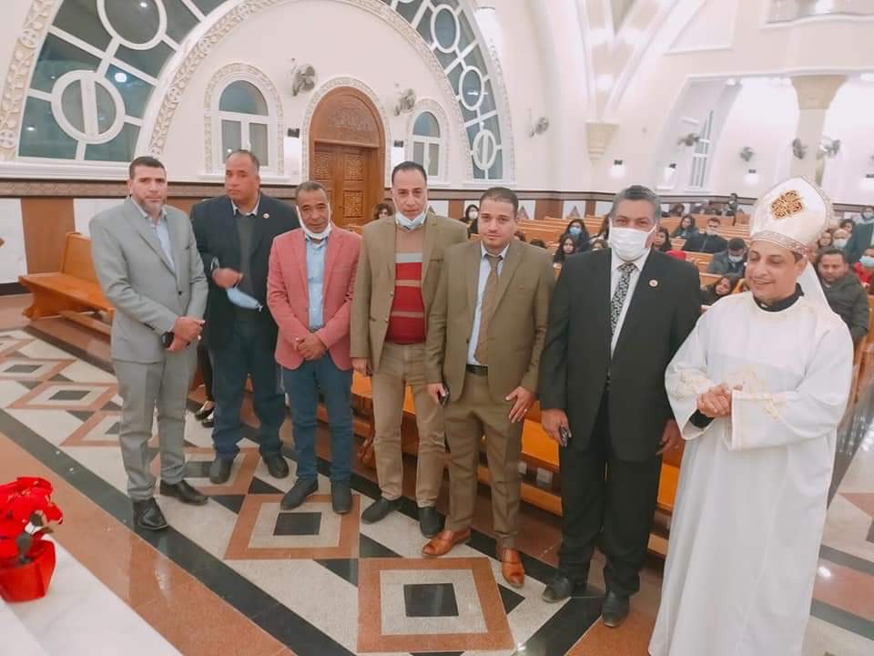 وفد من حماة الوطن يشارك في قداس عيد الميلاد للأقباط الكاثوليك بكنيسة العذراء بالتجمع