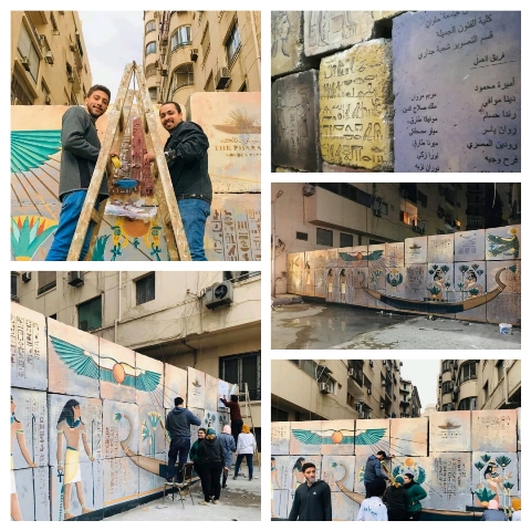 طلاب الفنون الجميلة بجامعة حلوان يزينون مسار موكب نقل المومياوات الملكية