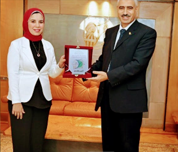 رئيس جامعة الفيوم .. يكرم " لبنى " لحصولها على الدكتوراة و " أميرة " لالتحاقها بكلية الطب