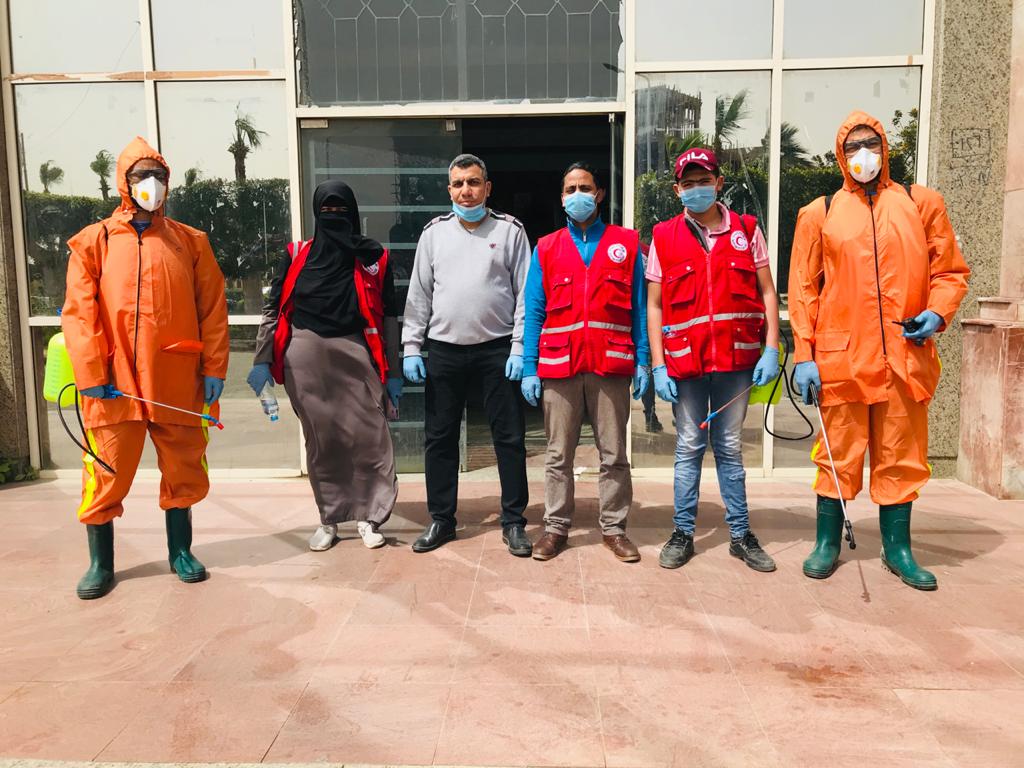 الهلال الاحمربالسويس يعقم مبنى قصر الثقافة و موقف السيارات