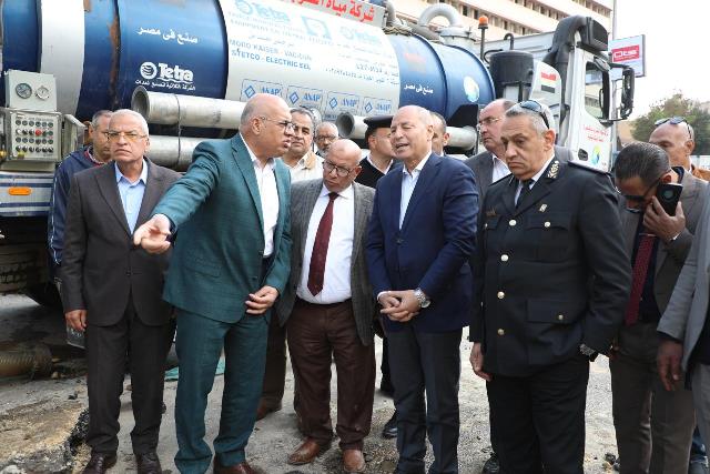 محافظ القاهرة يشرف على عمليات إصلاح كسر ماسورة مياه بشارع بورسعيد