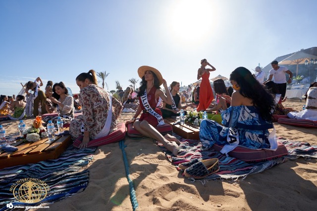 حفلة إغريقية ومسابقة بالألوان علي شواطئ شرم وعشاء شرقي لمتسابقات ملكة جمال القارات