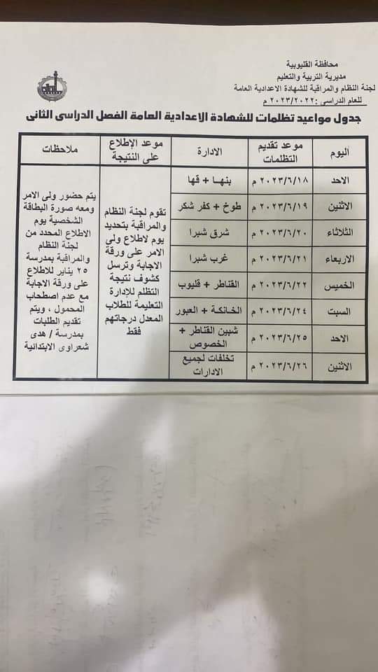 تعرف علي موعد تظلمات الشهادة الاعدادية بالقليوبية