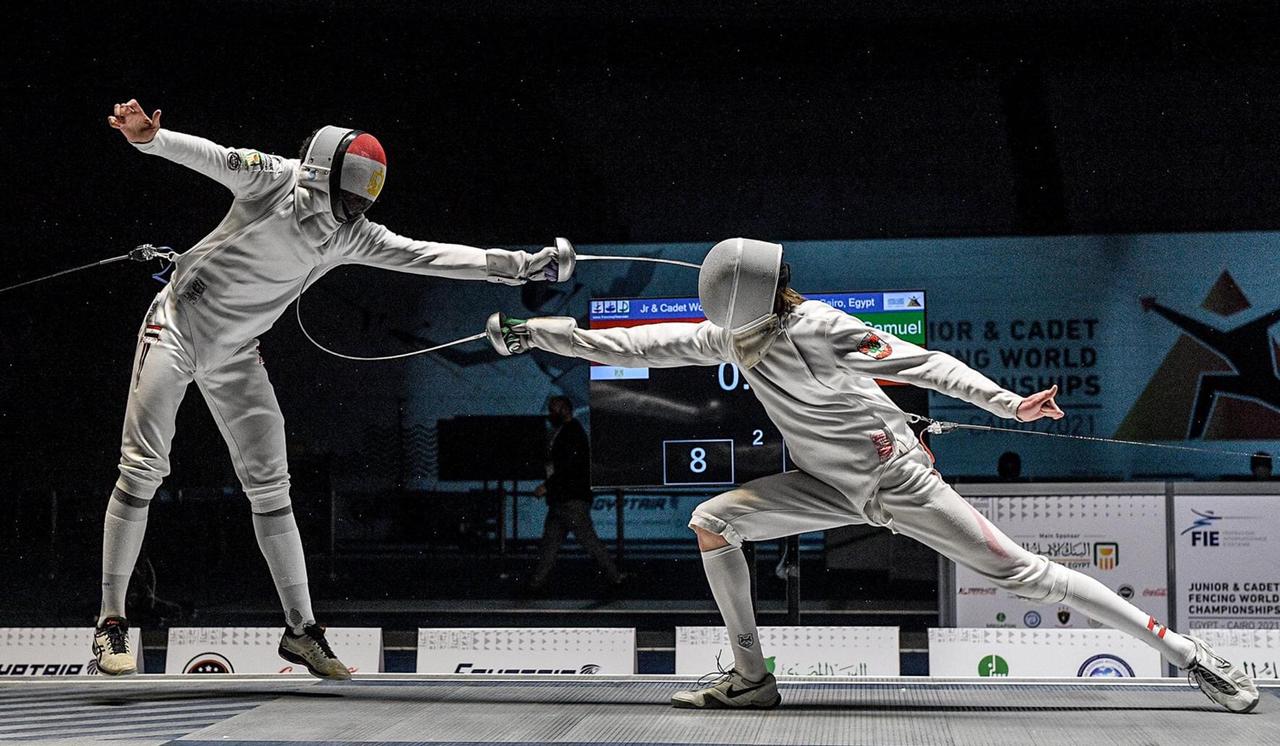 ملك حمزة وأحمد هنداوي في دور الـ16 لمنافسات سلاح الشيش ناشئين وناشئات ببطولة العالم