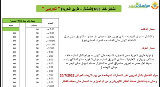 أضاف رماح الشيمى، أن خط سير المينى الباص الجديد كالتالى: "محطة القطار الكهربائى، بوابة الشروق، طريق الإسماعيلية 1 حتى بوابة الشروق 2" على أن يكون خط سير ميني باص NS3 هو: "أسواق الخير- حجر الأساس - الإسكان الاجتماعى - المرور - قسم شرطة الشروق - المنطقة التاسعة - تاون سنتر - دار مصر - المنطقة الثالثة والرابعة والخامسة - كمبوند المعادى - نهاية طريق الحرية".