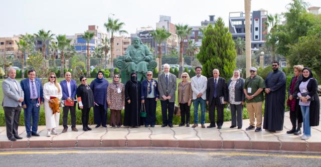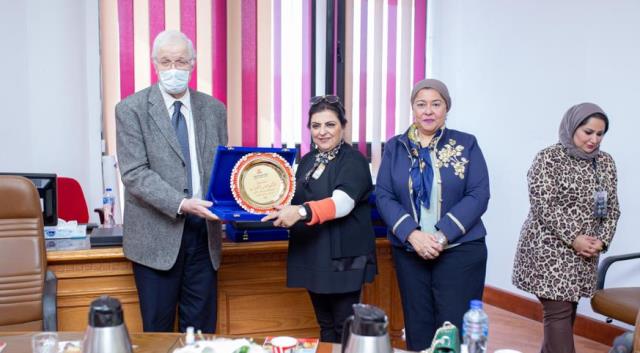 كرم الدكتور شريف فخرى محمد عبدالنبى، رئيس الجامعة أثناء فاعليات زيارة الوفد الكويتى كلاً من: "الدكتور نبيل الفيلكاوى نقيب الفنانين والاعلاميين بالكويت، الأستاذ على العوض رئيس قطاع الفنون التشكيلية بنقابة الفنانين والإعلامين بالكويت، الدكتورة عبير الكندرى عضو قطاع الفنون التشكيلية بالكويت، الأستاذة دلال ملك عضو قطاع الفنون التشكيلية بالكويت، الأستاذ فهد النجار عضو قطاع الفنون التشكيلية بالكويت".