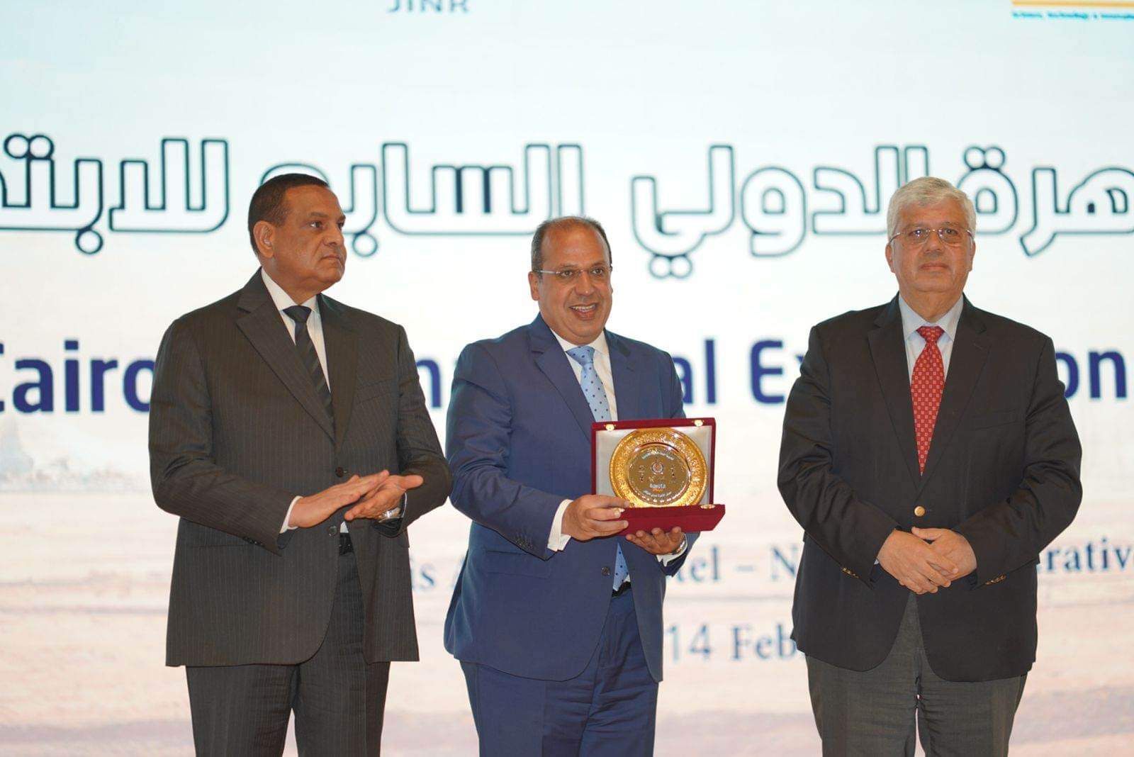 وسلم الدكتور محمد أيمن عاشور وزير التعليم العالي والبحث العلمي، واللواء أركان حرب هشام آمنة وزير التنمية المحلية، والأستاذ الدكتور محمود صقر، رئيس أكاديمية البحث العلمي والتكنولوجيا، الجائزة إلي الأستاذ الدكتور محمد لطفي رئيس الجامعة البريطانية.