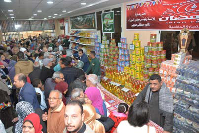 جهود كبيرة تبذلها الدولة للتخفيف والتيسير على المواطنيين من ارتفاع أسعار السلع الغذائية ولجأت لإقامة منافذ بيع بأسعار منخفضة خصوصا مع دخول شهر رمضان الكريم بجميع المحافظات.