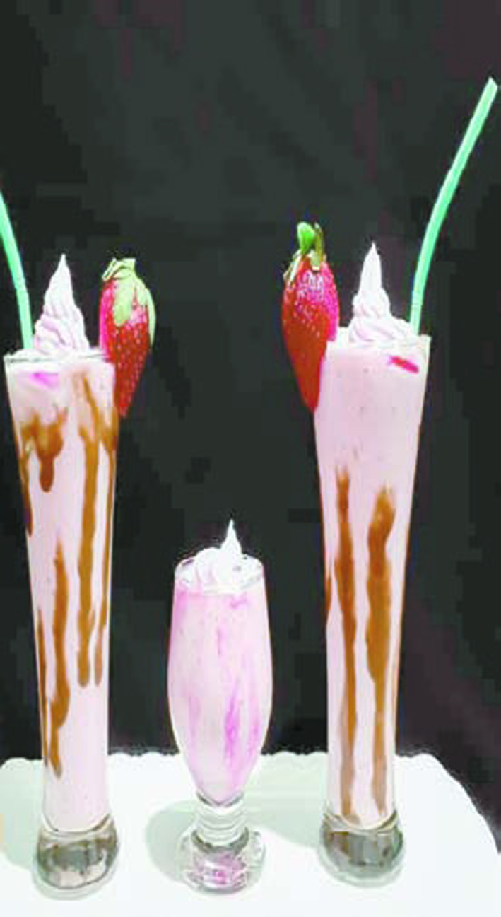 تخلط كل المكونات فى الخلاط وتصب فى الكاسات وتزين بصوص الفراولة او صوص الشوكولاتة مع حبات الفراولة وتقدم مثلجة.