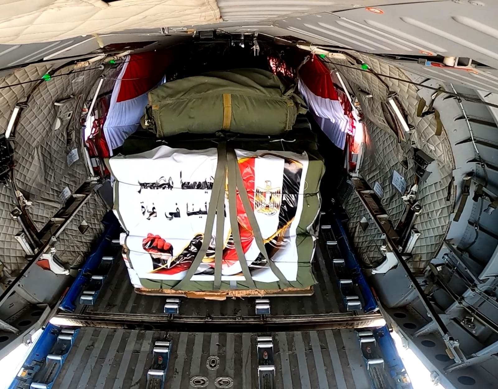 بالتزامن مع الجهود المصرية المكثفة للوصول الى هدنة إنسانية ووقف إطلاق النار داخل قطاع غزة وتأمين إستمرار تدفق حركة المساعدات الإنسانية لمعاونة للأشقاء الفلسطينيين وتلبية مطالبهم الأساسية فى ظل الأزمة الإنسانية المتفاقمة داخل القطاع ، وتنفيذاً لتوجيهات السيد الرئيس عبد الفتاح السيسى رئيس الجمهورية القائد الأعلى للقوات المسلحة , كثفت القوات الجوية المصرية طلعاتها اليومية بالتعاون مع نظيراتها من دولة الإمارات العربية المتحدة الشقيقة لتنفيذ أعمال الإسقاط الجوى لعشرات الأطنان من المساعدات الغذائية ومواد الإغاثة العاجلة على شمال قطاع غزة .