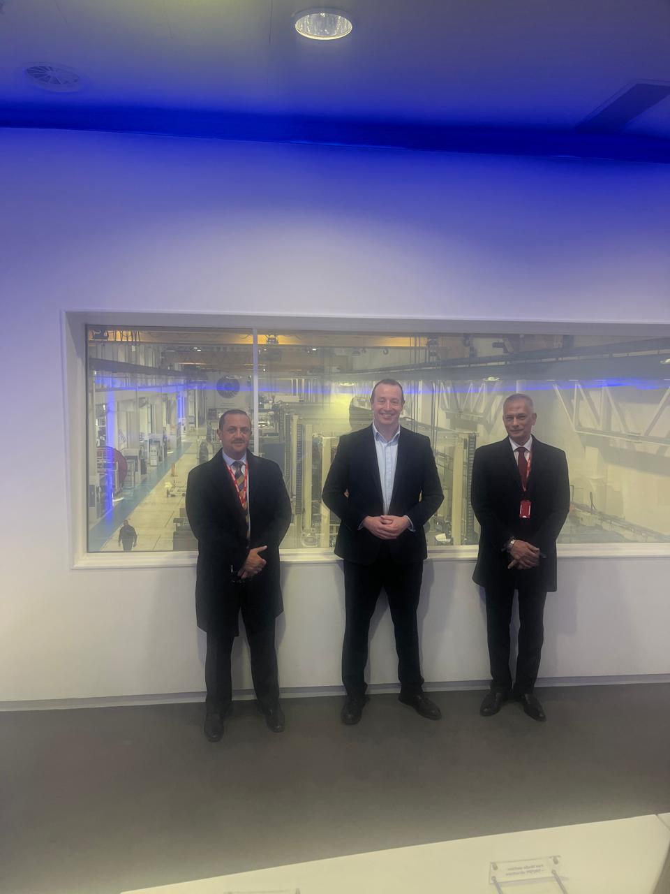 في إطار الزيارة الرسمية لوفد وزارة الطيران المدني المصري إلى العاصمة البريطانية لندن، قام المهندس أيمن عرب رئيس الشركة القابضة للمطارات والملاحة الجوية، والمهندس إبراهيم فتحي رئيس شركة مصر للطيران للصيانة والأعمال الفنية، بزيارة تفقدية إلى المقر الرئيسي لشركة رولز رويس لمحركات الطائرات في مدينة ديربي بالمملكة المتحدة.