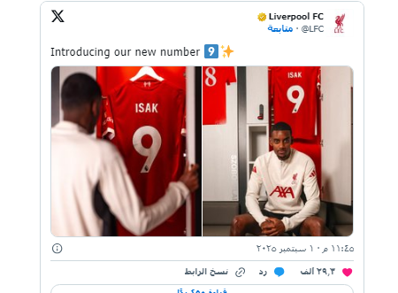 أعلن نادي ليفربول الإنجليزي عن تعاقده مع المهاجم السويدي ألكسندر إيزاك قادما من نيوكاسل في صفقة هي الأغلى في تاريخ سوق الانتقالات بالدوري الإنجليزي الممتاز.